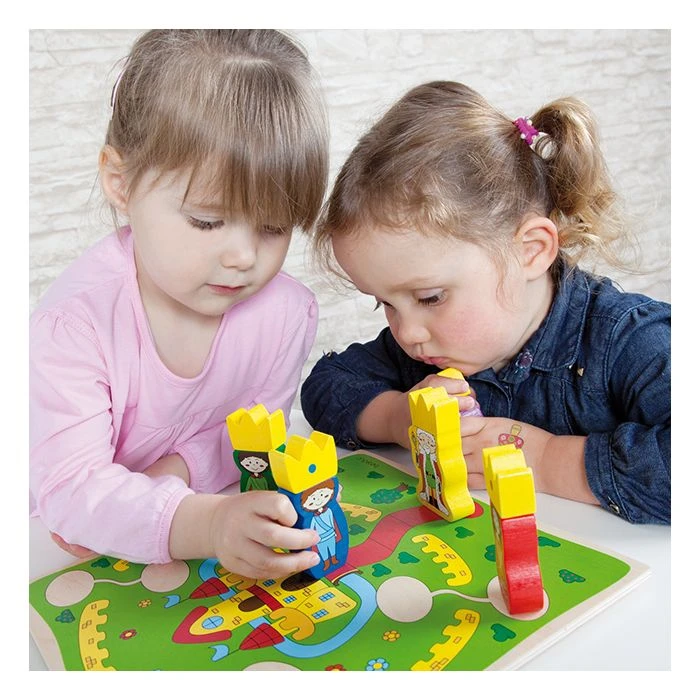 | Inhoud | 1 speelbord van hout, 2 prins, 2 prinses, 1 koning, 4 kroon, 1 dobbelsteen |
