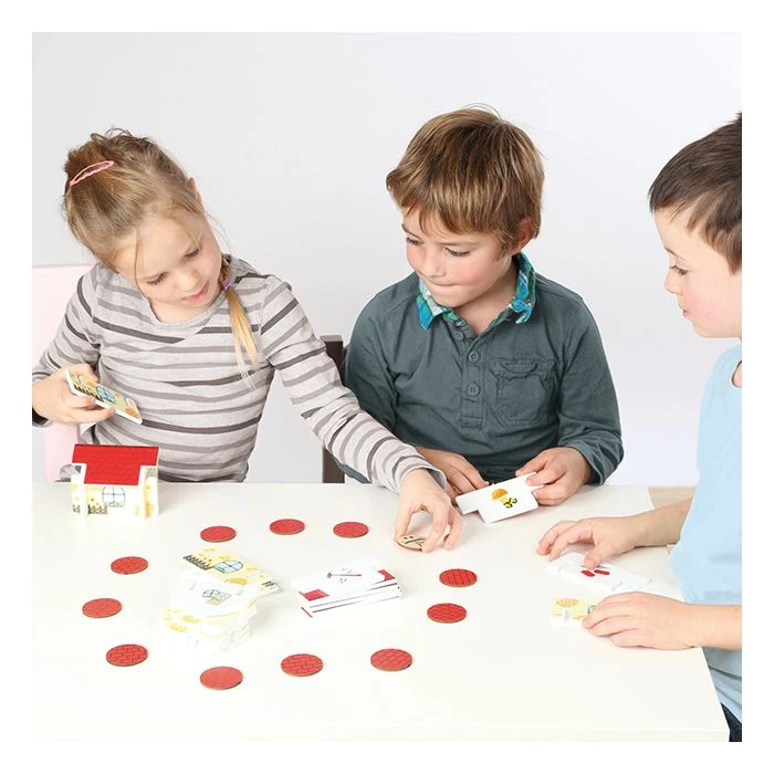 Bouw je eigen huis steen voor steen met het houten spel smart builders. Draai omstebeurt de gereedschaps chips om en vergelijk ze met de symbolen op de onderedelen van jouw te bouwen huis. Heb je een match dan begin je met bouwen net zo lang tot jouw huisje af is.