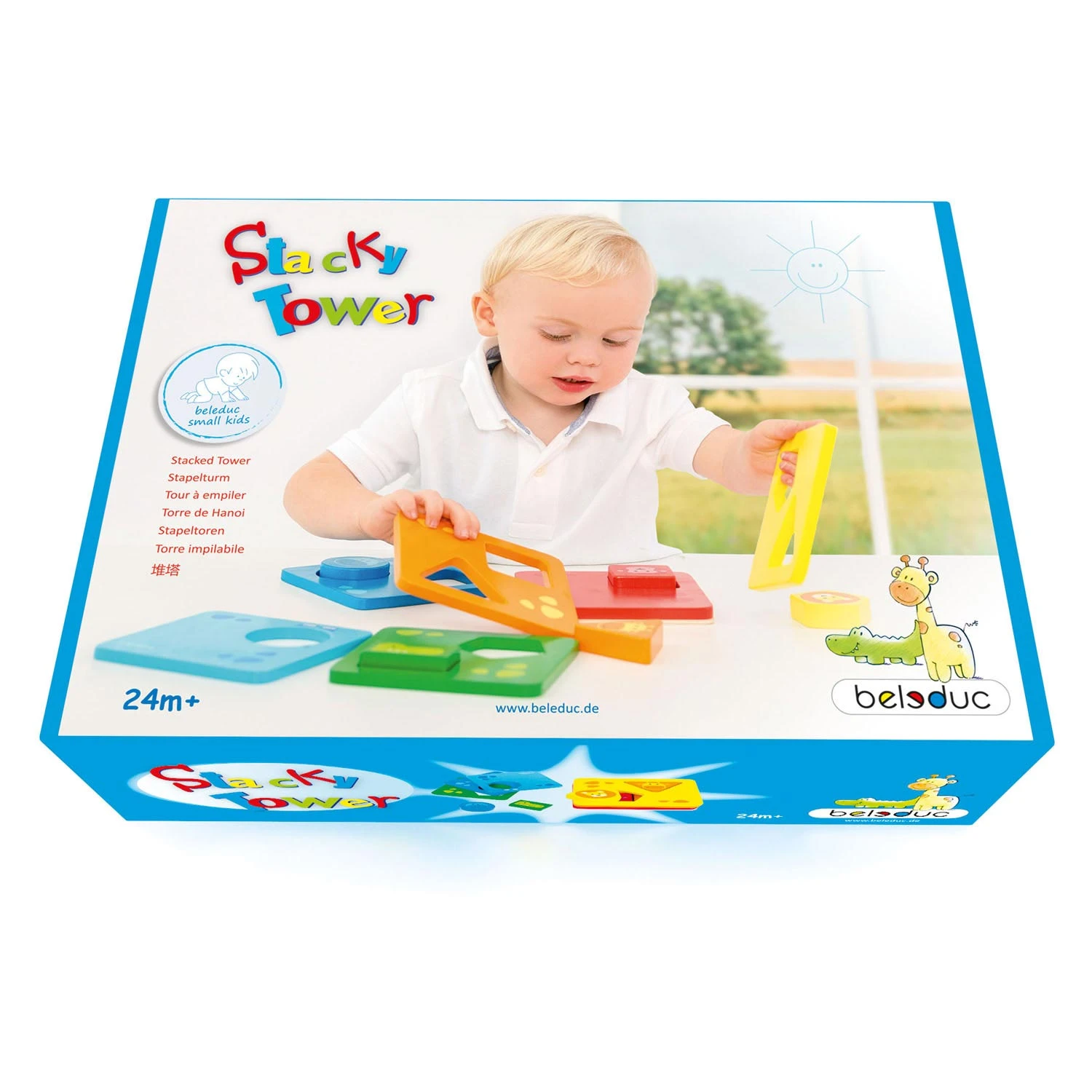 Puzzel op een andere manier! Met de Stacky Tower kunnen kinderen niet alleen sorteren, maar ook leren vormen te herkennen en een driedimensionale toren bouwen. De vriendelijke safaridieren helpen daarbij enorm dankzij hun vrolijke kleuren. Geschikt voor kinderen vanaf 2 jaar oud