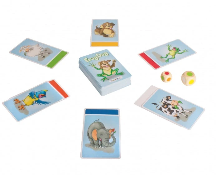 Een kikkerhond, vogelfant of een katmuis. Gooi de dobbelstenen en maak je eigen naamcombinaties met de verschillende soorten dieren. Verbeeld hoe ze eruit zien en welke geluiden ze maken.